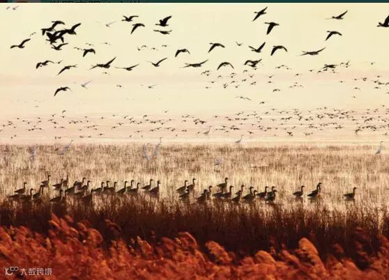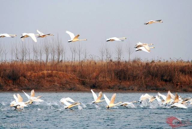 每到冬天,成千上万只候鸟又如期飞至东营黄河三角洲国家级自然保护区,在这里栖息越冬。保护区内的湖面上一群群洁白的天鹅,或引吭高歌,或翩翩起舞,或自由翱翔,水面上还有不少其他水禽结伴嬉戏;湖中亭台楼阁若隐若现,海市蜃楼一般,具有独特的美丽情调。
