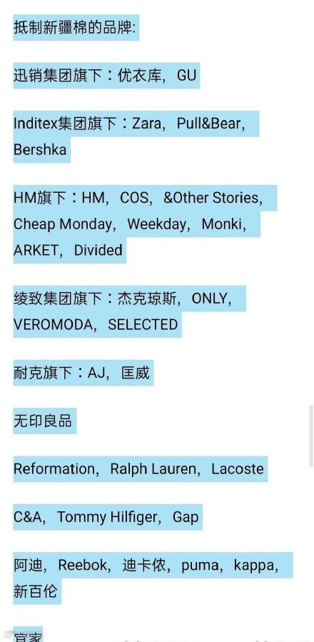 网友3:耐克、HM、优衣库、阿迪、宜家……突然间这么统一抵制新疆棉花?