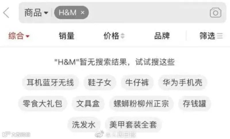 在京东、淘宝等电商网页,搜索“H&M”等关键词,显示没有结果。
