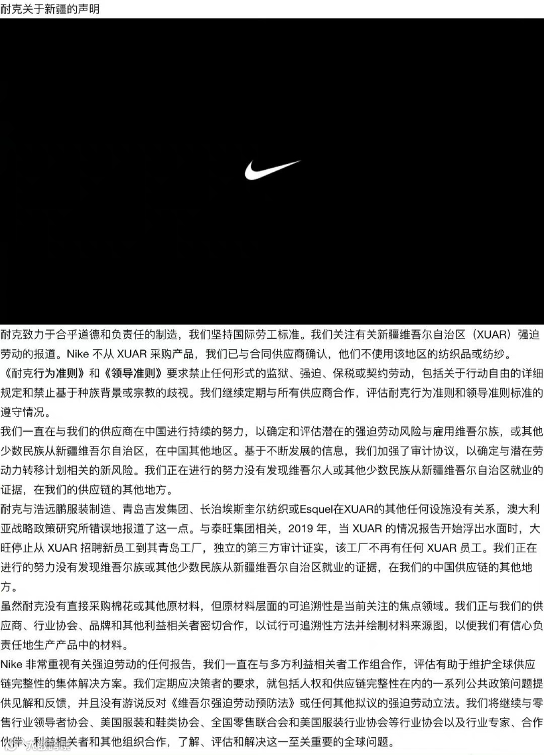 HM之后抵制新疆棉花之后,耐克又发声明,故意为之?