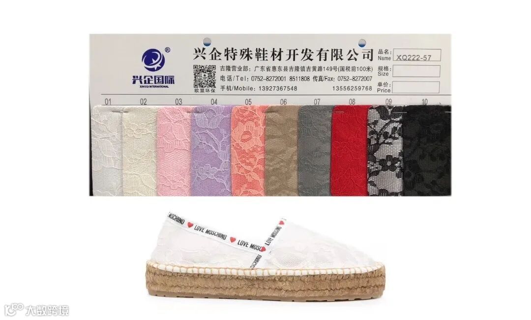 兴企国际是一家集设计、开发、生产、进出口销售于一体的创新型企业,公司每年都参加国内外各大鞋材展会,并研发最新潮流设计以满足不同客户的需求。兴企鞋材站在产业发展的高度,以全新的视野更新观念,以整体的竞争观调整战略,以区域为目标策略延伸市场,以全程监控的管理模式实现营销的全方位升级与突破,现已逐步建成一个规模庞大的品牌营销网络,为企业营销注入了全新活力。公司成立十五年来,以卓越的开发能力,优良的品质,完善的服务和具竞争力的价格,已树立良好的口碑和声誉。展望未来,公司以“一步一脚印”的务实开拓精神、顺应潮流的非凡魄力成为时尚特殊面料的领航者。