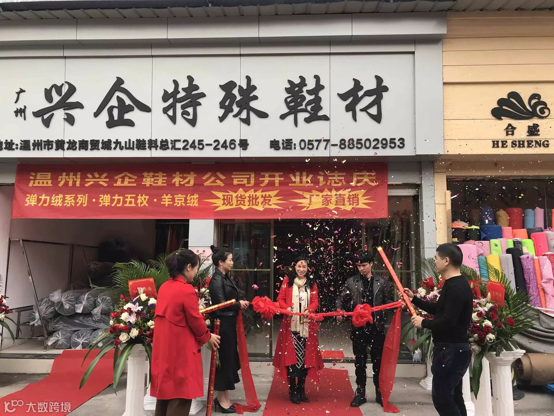 2017年11月24日,温州兴企鞋材分公司开业庆典仪式在温州黄龙商贸城隆重举行。开业现场,彩旗飞扬,花篮紧簇,火红的地毯,攒动的人群,给本次庆典活动增添了更多喜庆的气氛。开业仪式上,由兴企鞋材有限公司的董事长蒲秀林亲自剪彩誌庆。