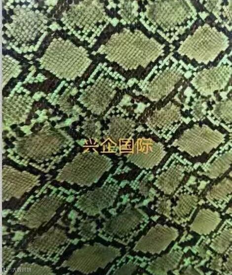 1、布料底,色泽艳丽,蛇纹纹理清晰 2、手感好,蛇纹逼真 |