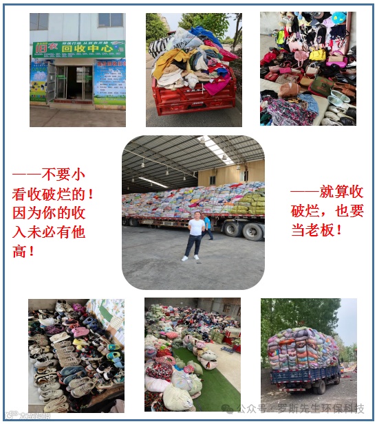 87年出身于西北农村,东莞进厂打过工,后来开过烧烤店,开过快餐店,还送过快递,2023年9月初网上找到我们,通过电话微信了解后,他说上班不好干,做餐饮的也太多了,干不下去,送快递的话长期做下去也不是事,他说他发现旧衣服家家户户都有,他们那边很多都扔了,收旧衣服投入不大,比开店简单多了,时间也自由,另外他最看中的是公司衣服鞋包床上用品都收,分拣分类公司包教会怎么操作,物流上门包回收货物,现货现款,收得多就能挣得多,2023年9月15号他来公司考察后,当即签约合作,学完回去开始收货,起步是自家县城房子一楼一间70平房子做仓库,三轮车去收货,第一次他发货4吨,用了20多天,第二次他发7吨,用了半个月,后续他就整车18吨发货了,短短一年时间不到,如今他每个月收旧衣服、旧鞋100多吨,他的家人包括亲戚看到他做起来了,都跟他学着做,如今李老板成为当地有名气的废品回收大鳄。
