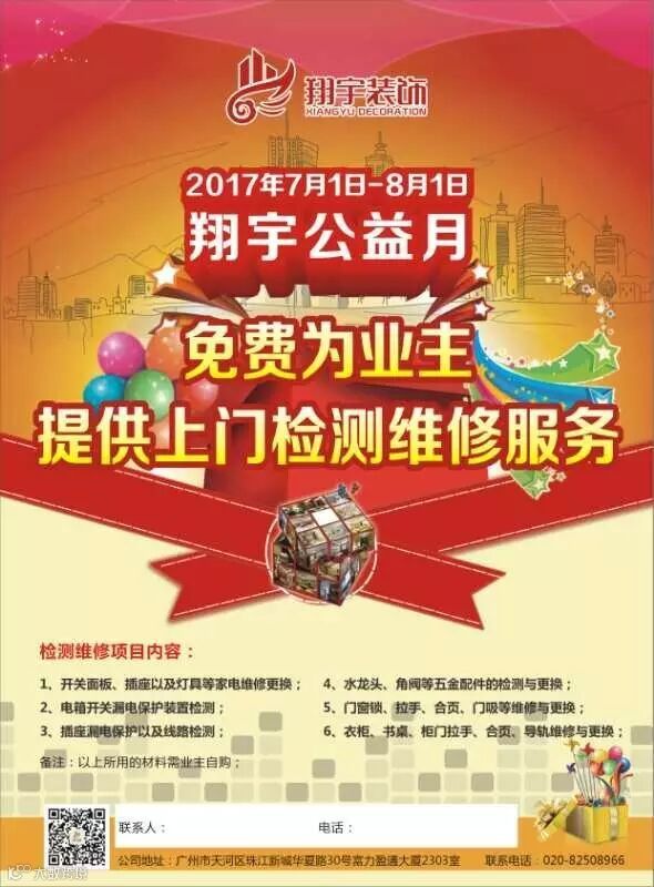 2017年7月1日-8月1日为翔宇公益月!免费为业主提供上门检测维修