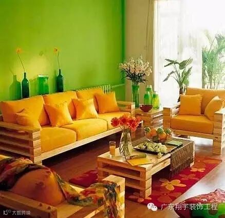 当工作了一天的你感觉身心疲惫、压力重重、精神紧张时,回到家,用蓝色及绿色装饰的墙面,会有调节神经、镇静安神,解除疲劳的作用,尤其是自然的绿色对晕眩、疲惫、恶心与消极情绪有一定的作用。