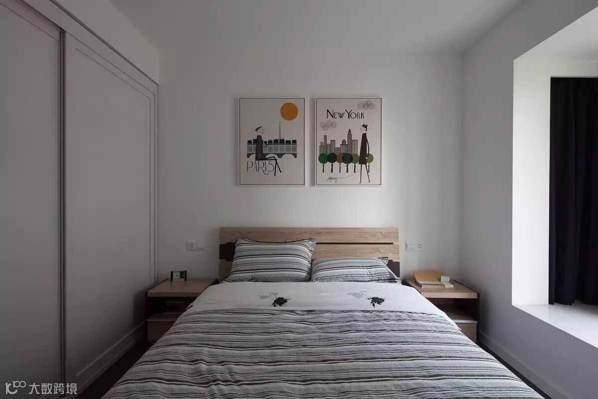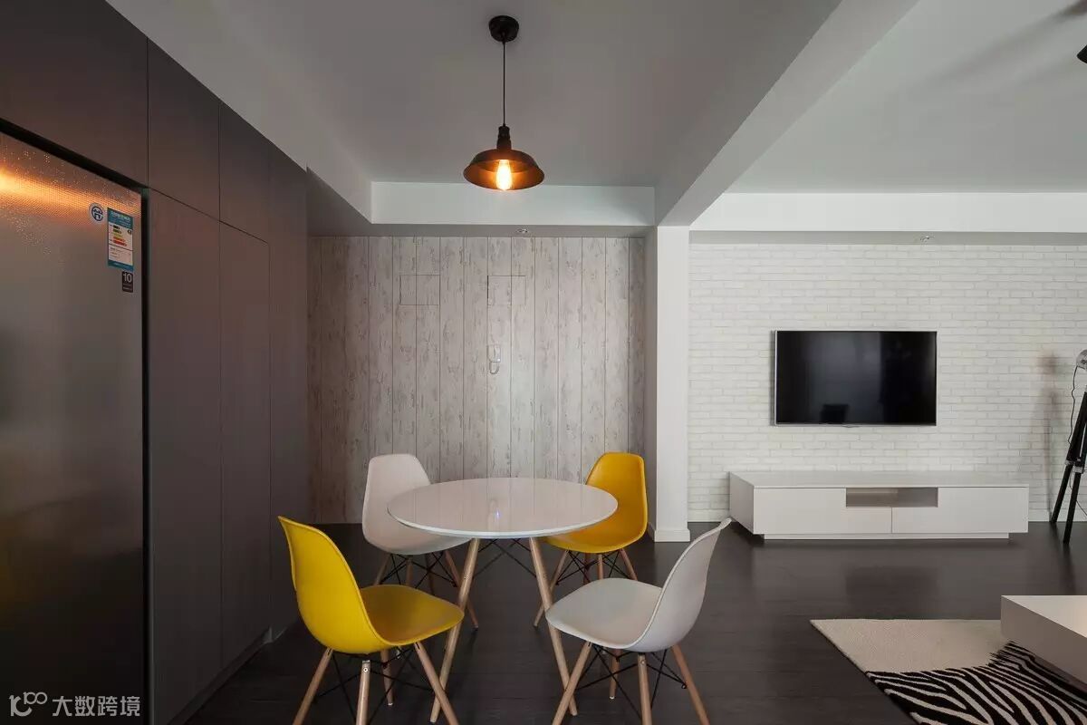在材料上多采用白色墙砖、和一些天然材质,家居上多采用板式家居,靠比例、色彩、质感来传达美感。