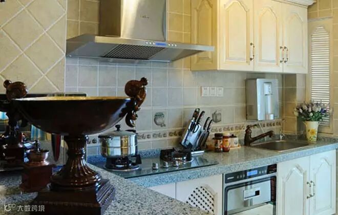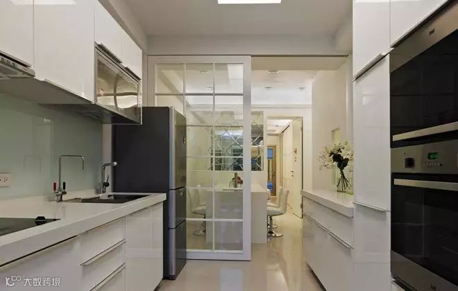 精致有序的厨房会让人感到心情愉悦,反之,杂乱的厨房会让人感觉拥挤,心情变的急躁,自然就热了,所以,厨房的里的电器、摆设都要按需按序放好,如果冰箱、微波炉等电器采用内嵌式,可节省空间,让厨房更敞亮些。