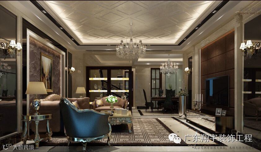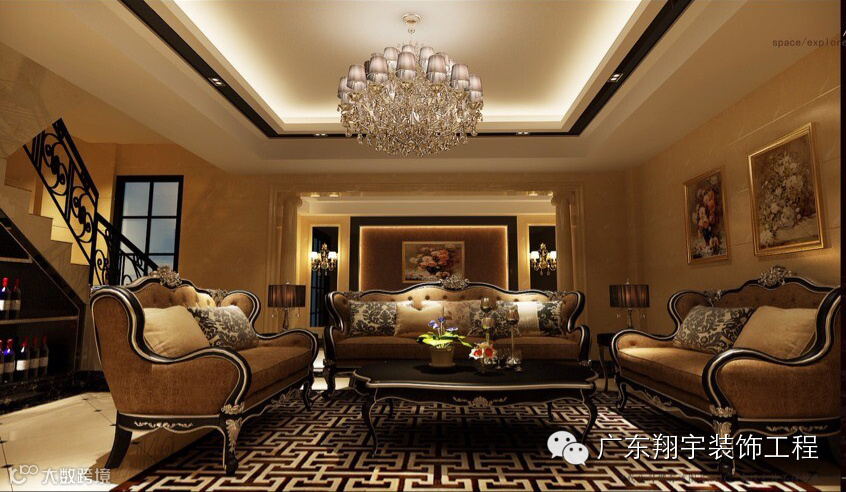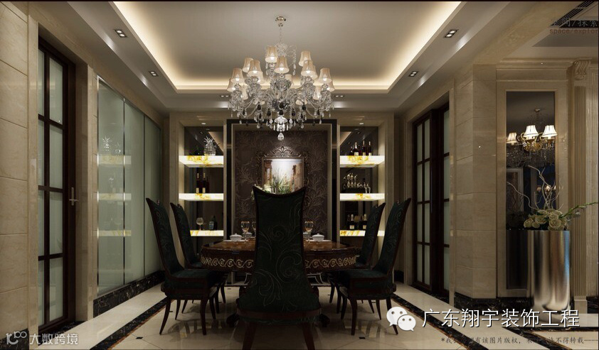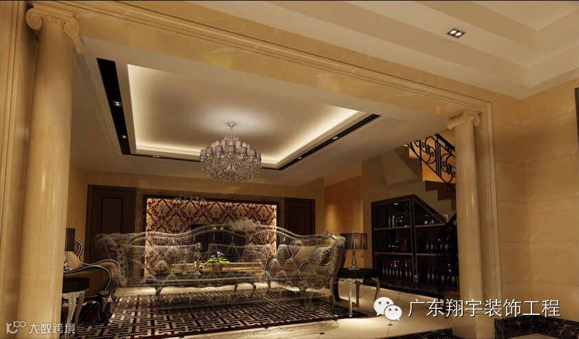 雍容贵气的香槟金与浪漫尊贵的水晶灯相互组合,散发出欧式风格的典雅与华贵气息,简洁干练的现代设计语言简化了传统欧式的琐碎装饰,以明快而有气度的手法诠释了具有现代情调的空间。从精致的色彩搭配到点线面相结合的空间构图,整个空间雅致、氛围柔美浪漫,使人体验贵族风范的同时,又能体验到闲适有度的生活情趣,本案将欧式贵族风格的奢华元素与后现代主义的符号完美的融合,强调视觉上的同时,更显文化的积淀性和历史的深厚感。