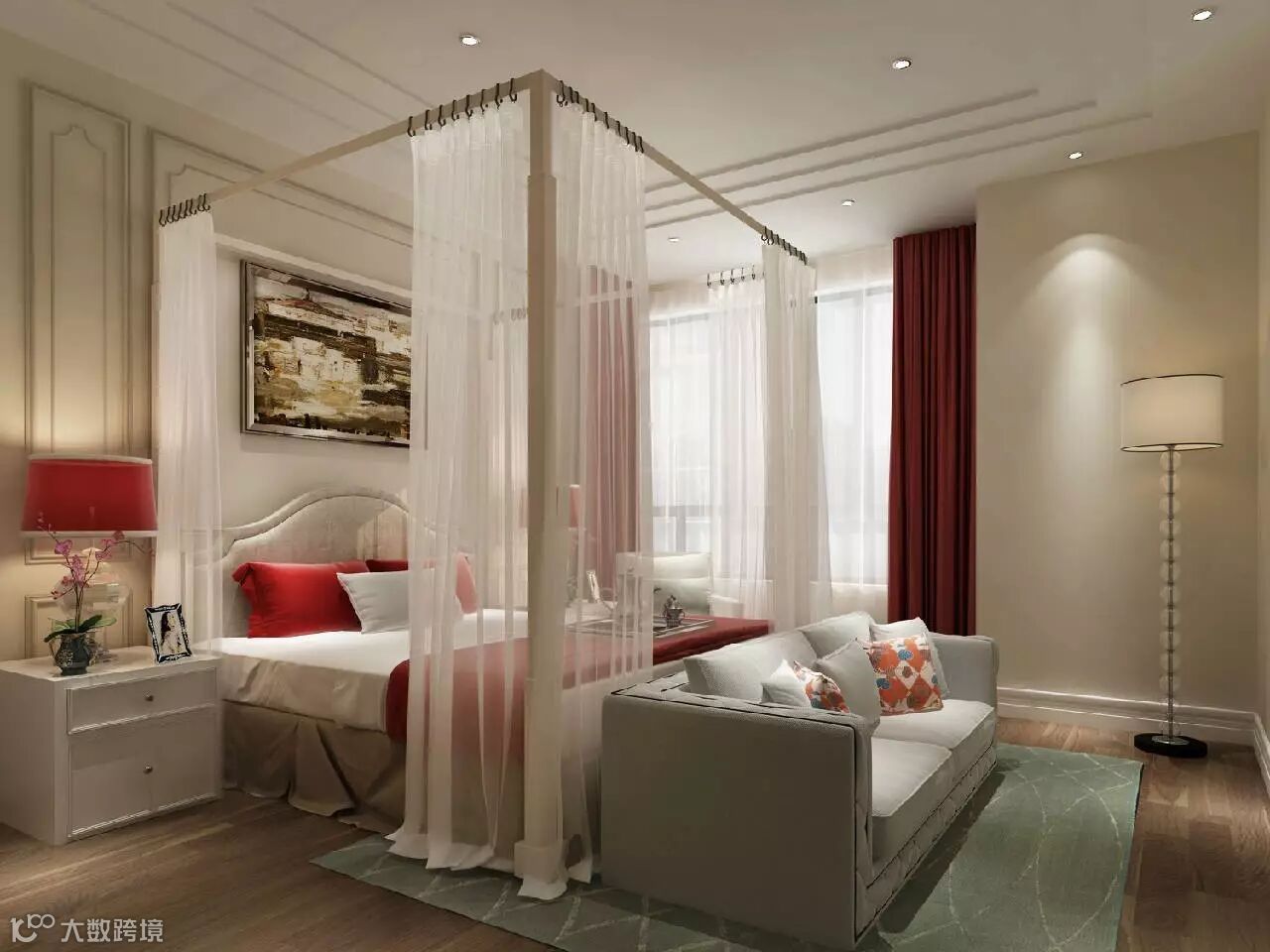 大见刚,细见柔,考虑业主的生活习惯和细节要求,在主卧的设计上充分考虑业主两人的浪漫主义情怀。墙面以暖色调为主,搭配上极简与复古相结合的床体造型,再以高纯度的红色软装为点缀。让整个空间显的更温馨更时尚,凸显房屋主人的浪漫主义情怀,以简洁的线条感和轻盈的设计感突出现代风格的独特美感,给人简洁、舒适的居家体验。