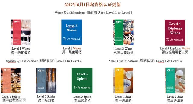 WSET的资格认证课程划分为三个主题方向: 葡萄酒, 烈酒及清酒。全新的第三级烈酒认证于2019年8月1日起推出。课程内容新增中国白酒、韩国烧酒和日本烧酒。