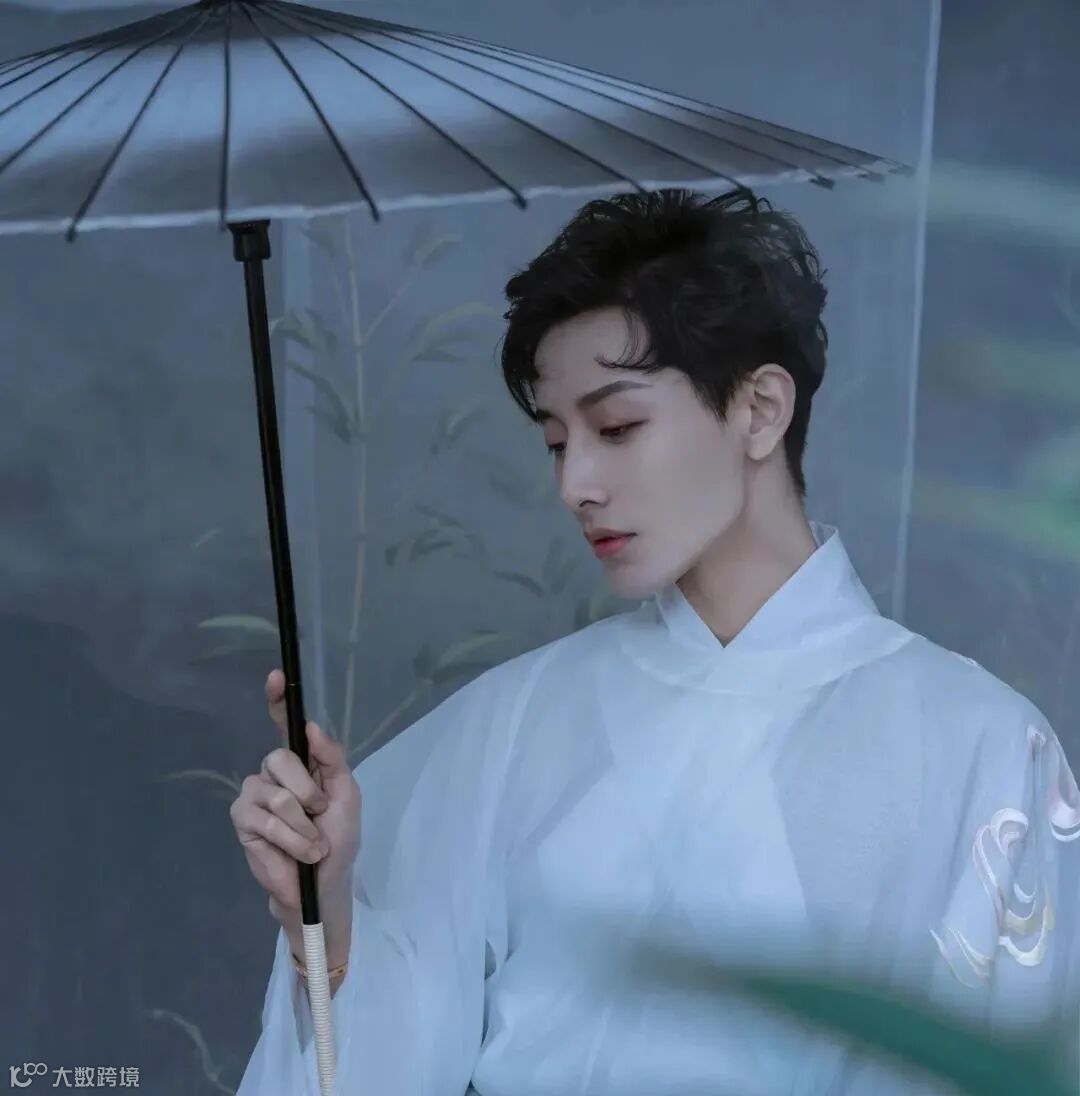 《问花》:伞,丝巾,双层白色长裤