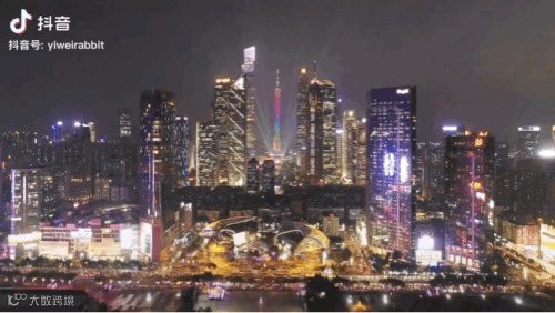 她时而闪烁着红的光彩;时而变成了绿色;时而又闪着蓝色的光芒。在夜幕的映衬下,广州塔犹如一位婀娜多姿的少女,在风中翩翩起舞。