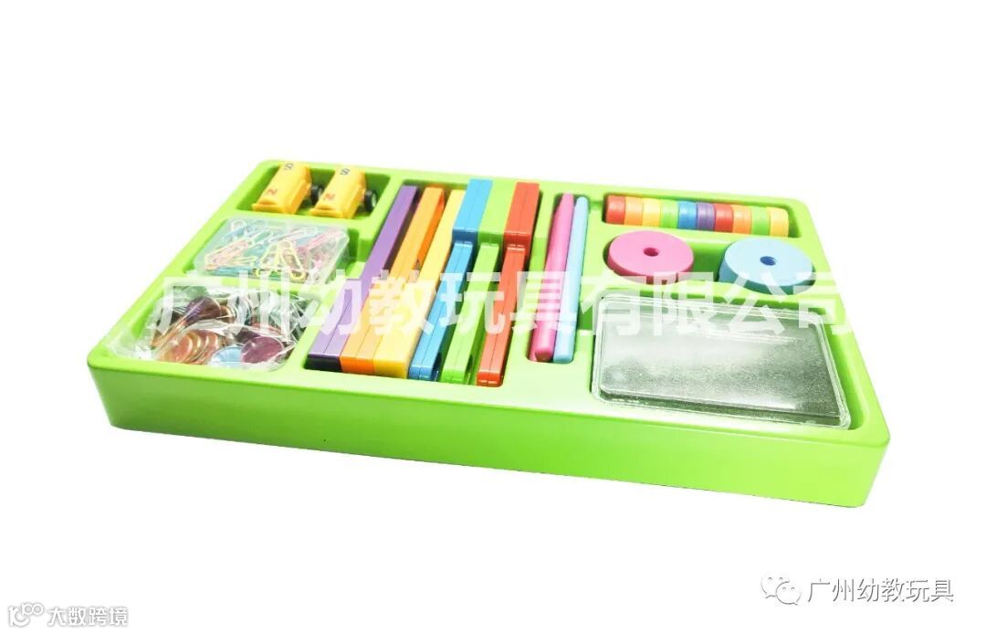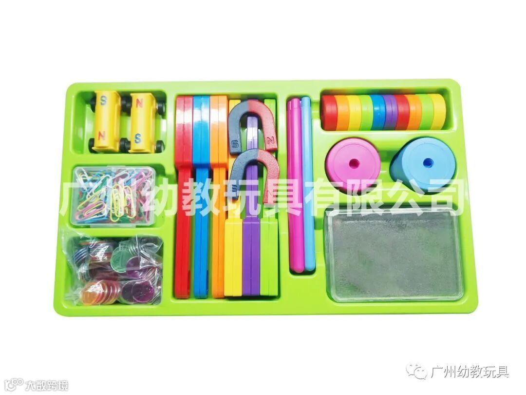 6个彩色包塑磁杖 、18个彩色塑封磁环、2个磁粉盒、6个磁悬浮底座、6个悬磁浮杆子、2辆磁力小车、100个回形针、100个透明金属片、2个U型磁铁、1个收纳底座、共240个材料,1本操作手册