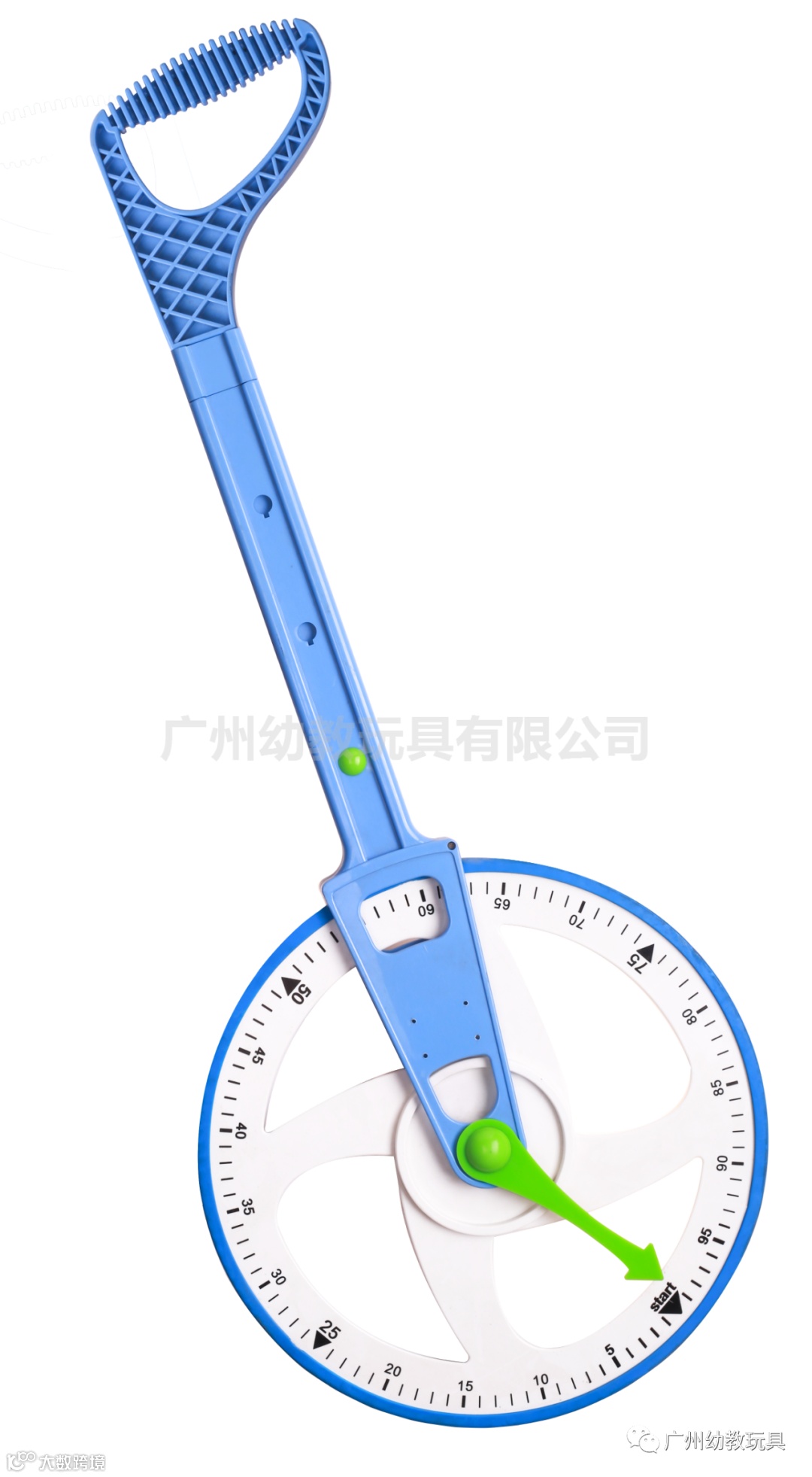 握住手柄把有刻度面相在自己,滚轮尺稍微前倾,推动滚轮测距尺沿直线向前滚动,滚动一圈距离是一米,手柄的高度可以自由调节,幼儿和大人皆可适合测量。