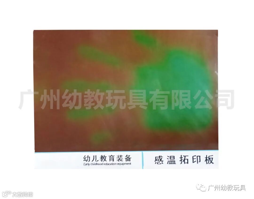 高灵敏度的感温材料,遇上不同的温度呈现不同的颜色,拓印在感温板上的漂亮手印,让小朋友对热学有更深的爱好。