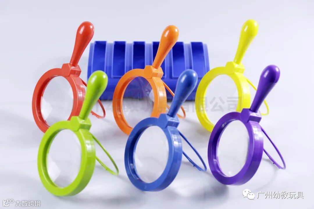 专为小手设计的大尺寸放大镜、采用安全轻巧的亚克力树脂净瓶,打开支架即可脱手观察,镜片放大倍数3-4倍。