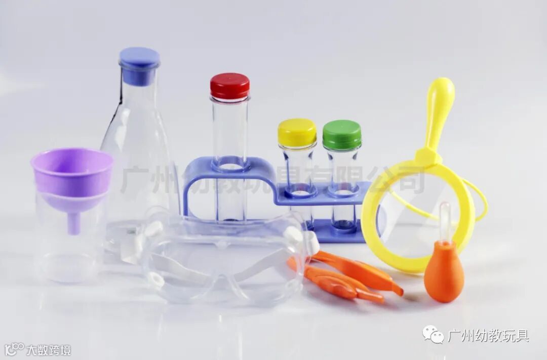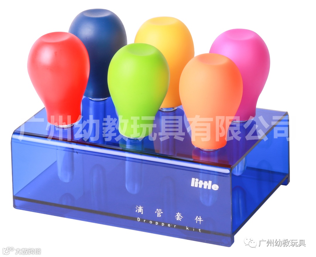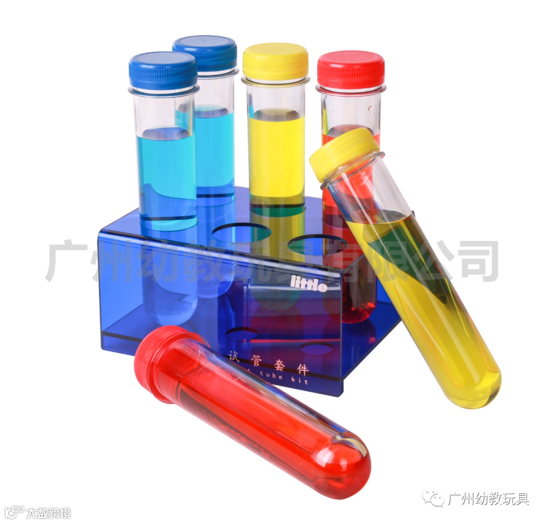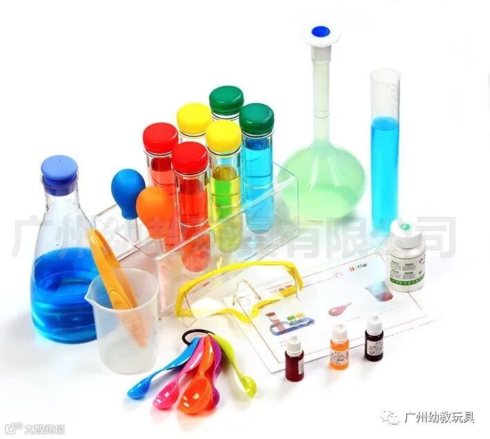 1个亚克力试管支架、6个塑料大试管 2个滴管、1个塑料锥形三角瓶、1副防护安全眼镜、1个塑料250ML烧杯、1个镊子、1个250ml量筒 1个150ml容量瓶、5个量勺、3瓶10ml食用色素、1袋苏打粉、1本实验活动手册。