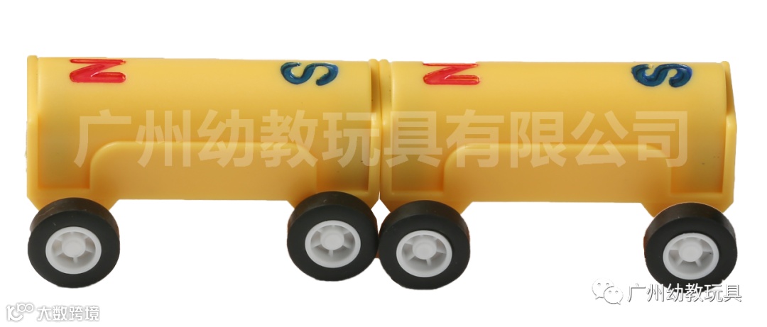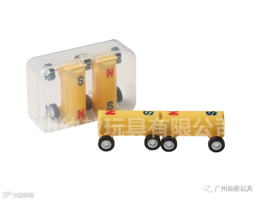 2辆带极性(N/S)磁力四轮小车,pp透明盒包装,演示磁铁同极相排斥,异极相吸引。