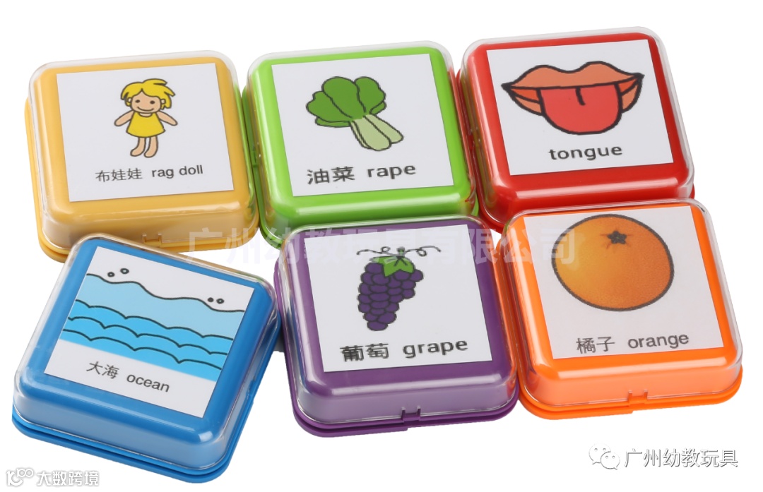 一款有录音和回放功能的小四方块盒,可录制或播放30秒语音、顶部透明盖可拆卸,插入个性图案和文字开展语音游戏、辅助学习,可重复复读,省去教师重复说明的时间,成为各种连环游戏和儿歌记忆的好帮手,背面有钥匙扣可挂于墙上。