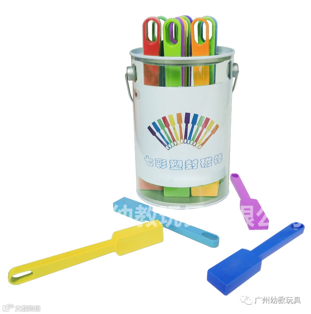 本品内置磁铁,外壳包裹塑料,安全美观,附带塑料桶收纳方便 ,可供小朋友探究磁力大小磁力方向、磁场和磁力的关系。