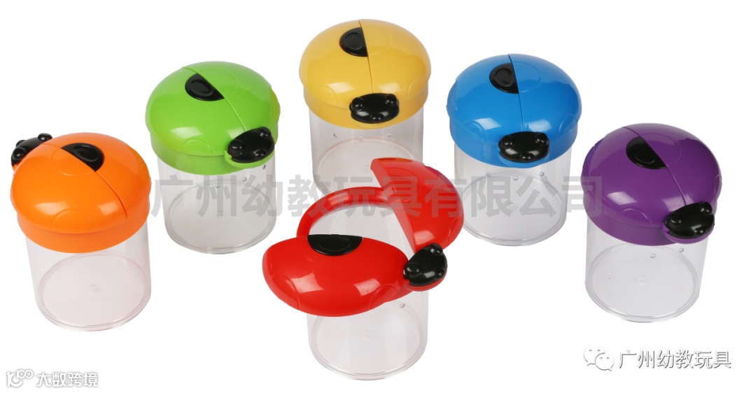 超大昆虫观察盒,由6个颜色组成,顶盖可爱瓢虫造型便于保护镜片,轻按半圆键便可展开翅膀,通过3.5倍安全放大镜可从观察盒内的昆虫,圆柱盒侧面有3个通气孔利于昆虫存活。