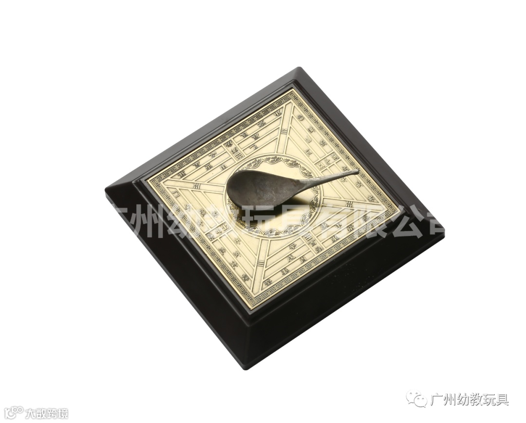 中国古代四大发明之一-司南模型,指南针的原型。将地盘放于水平面上,勺子置于地盘中心,转动勺子,当勺子静止时勺尾指向南方。