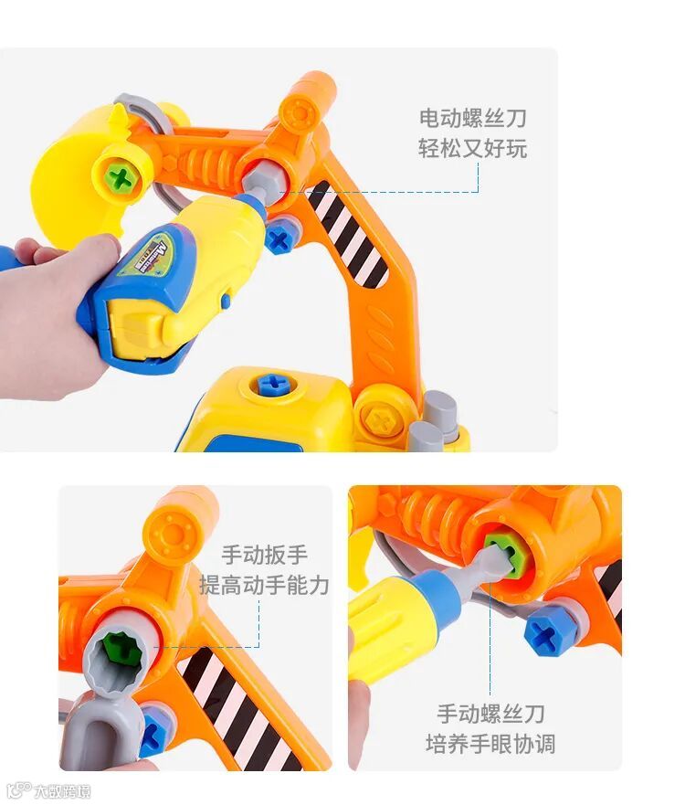 这是一款能拆的玩具,工程车的各种工具辅助,培养宝宝的拧、扭、按、压、转等动作,锻炼宝宝的灵活性。