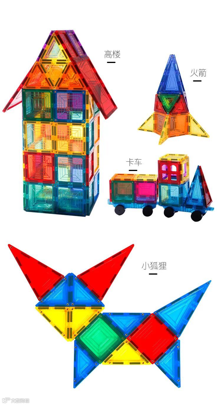 立体造型百变,巧妙的排列,搭配出各种形状造型,激发孩子想象力和创造力。