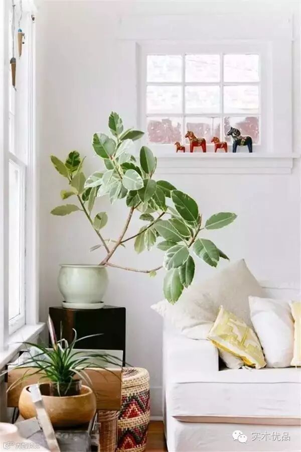 橡皮树虽喜阳但又耐阴,对光线的适应性强,所以极适合室内布置。常用来装饰客厅、书房,挺拔有生命力。