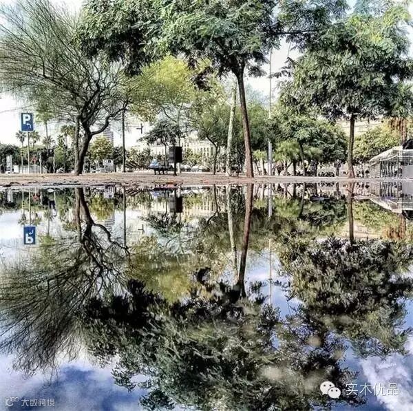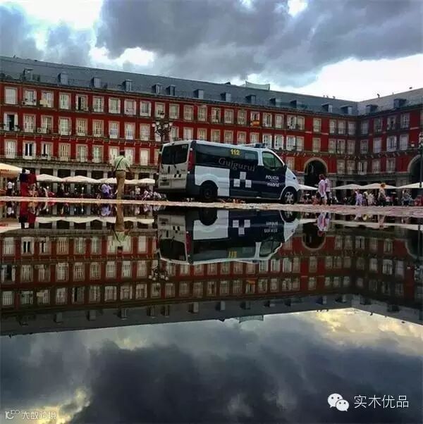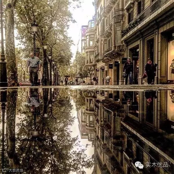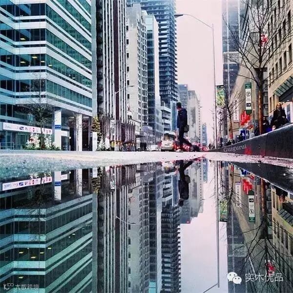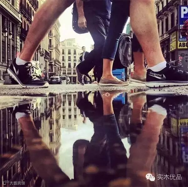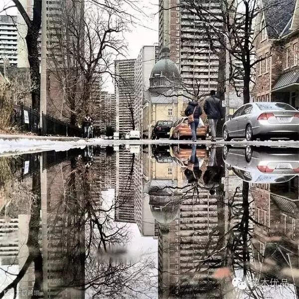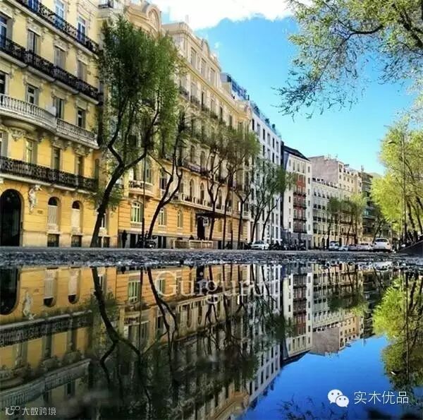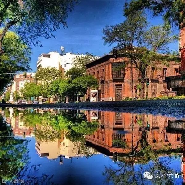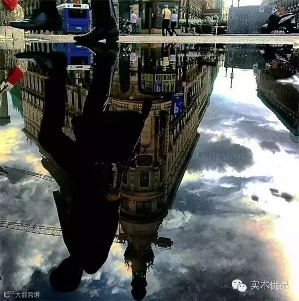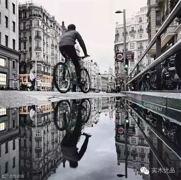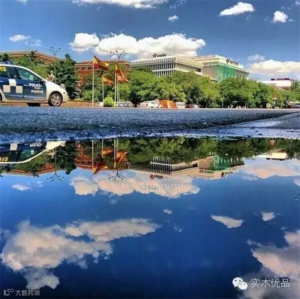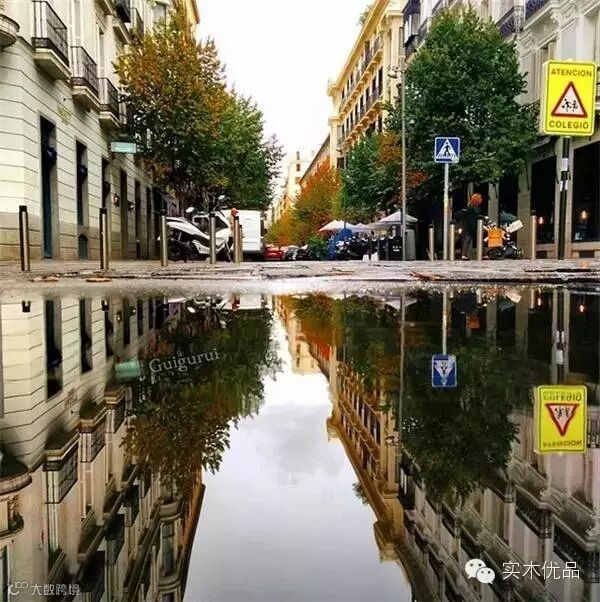 来自西班牙的摄影师 Guido Gutiérrez Ruiz 利用在下雨过后地上有大片水潭的时候进行摄影,拍出了城市中180度的倒影画面,让人着迷于这样的“平行世界”。