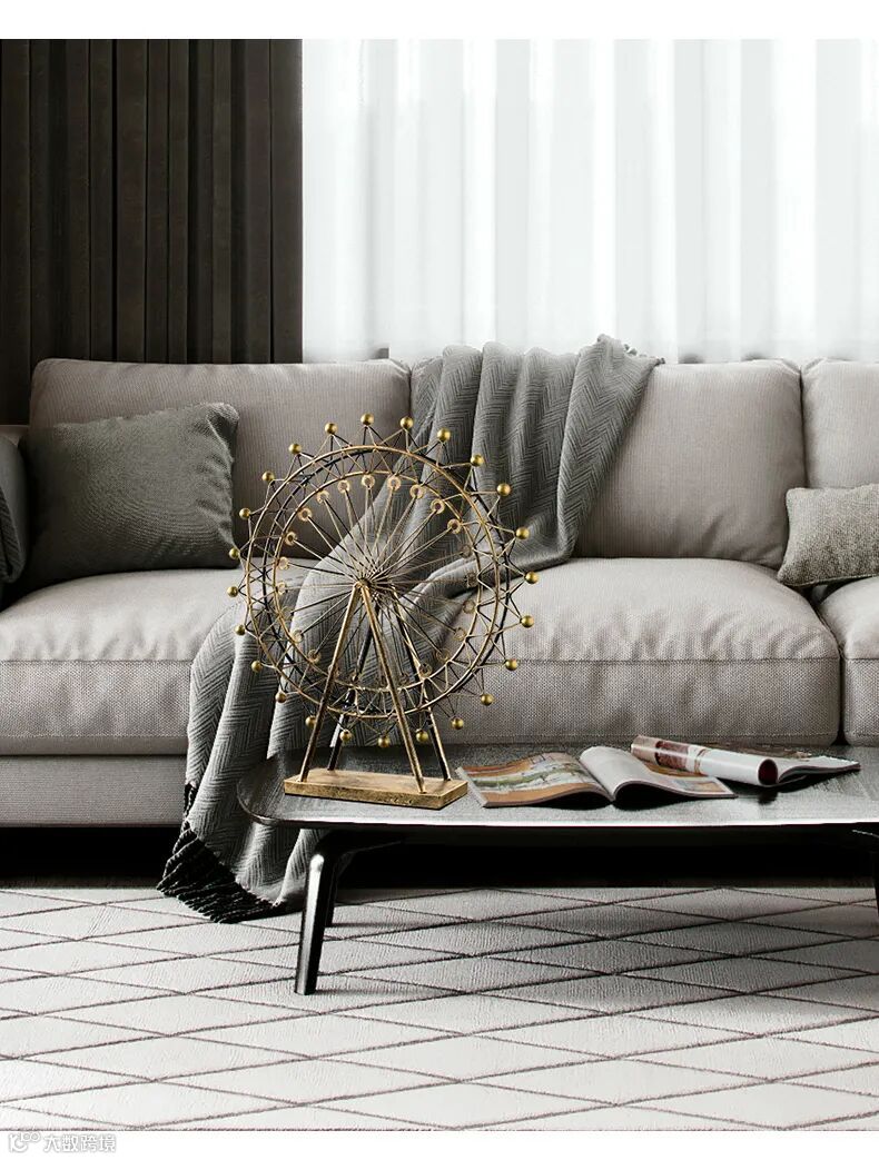 幸福摩天轮摆件,让亲朋好友进门第一眼就能被它吸引。可以转动的摩天轮,为空间增添温馨时尚感;复古怀旧风,做旧金属材质,稳重大气不浮夸。