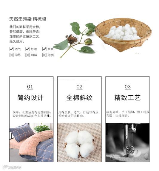 棉纤维是热和电的不良导体,透气性非常好,能够及时疏散多余潮湿水汽,使床品保持干爽。
