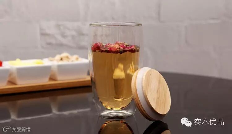 双层隔热玻璃杯,竹制杯盖。