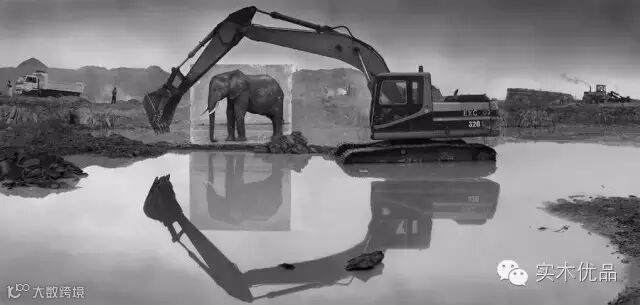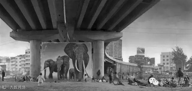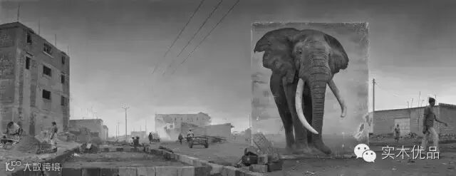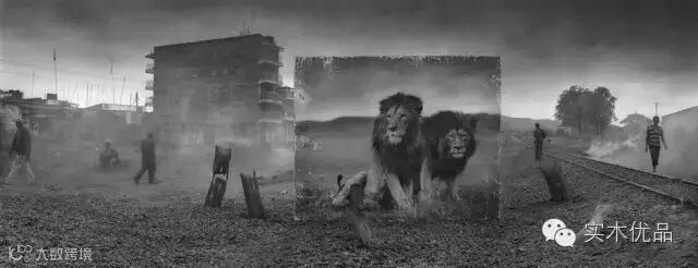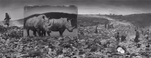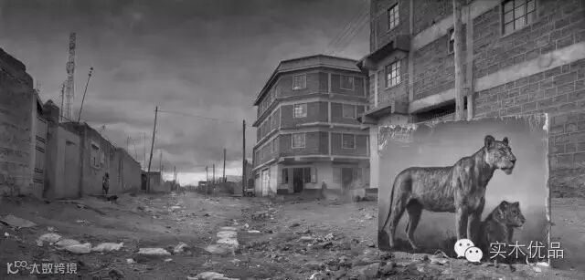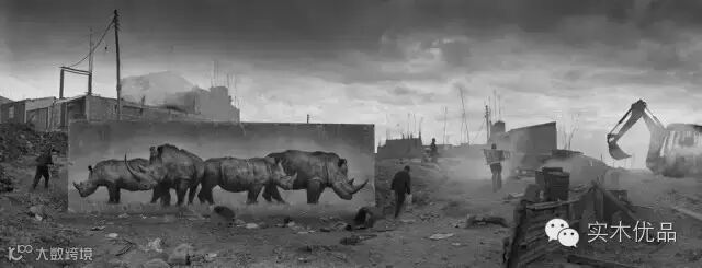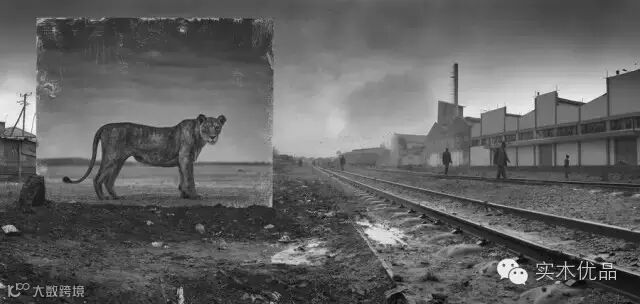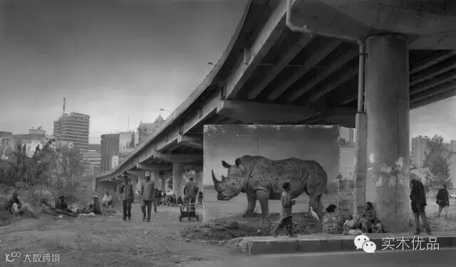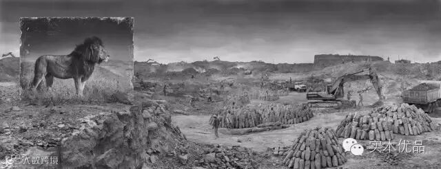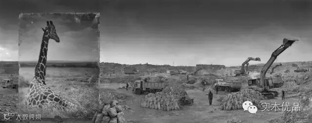 为了阐明这片土地上正在发生的巨大变化,Nick Brandt 在工厂、废墟和采石场上树立起了野生动物的看板,看板上的动物看上去和真实的动物一样大小,展示了大象、犀牛、长颈鹿、狮子、猎豹和斑马等动物站在城市景观里的画面。