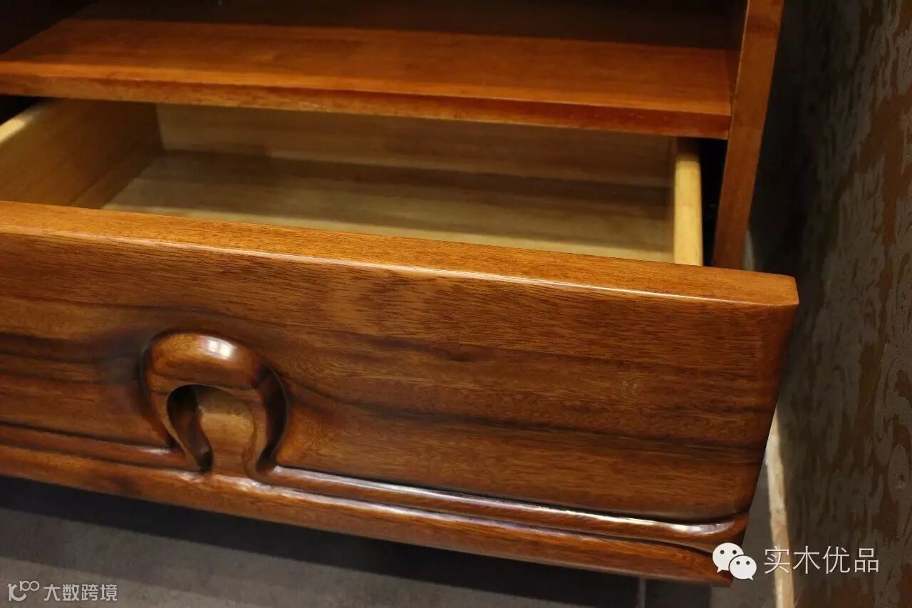 把手的设计是这一整套中式家具最大的特征识别,无论是大大小小的柜都采用了这个把手设计的特征~边角边缘出采用斜角过渡设计~