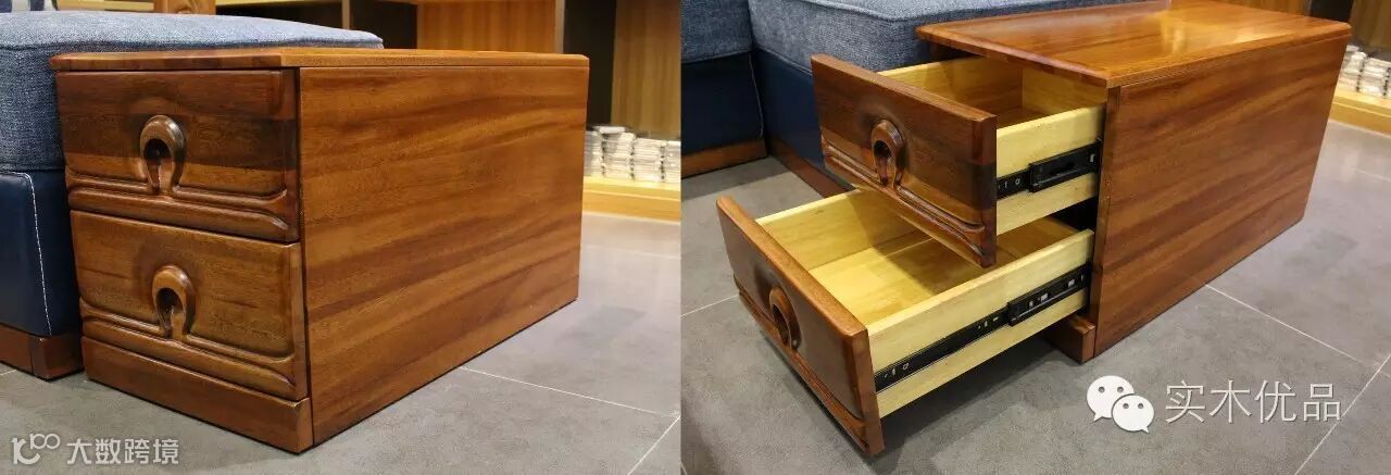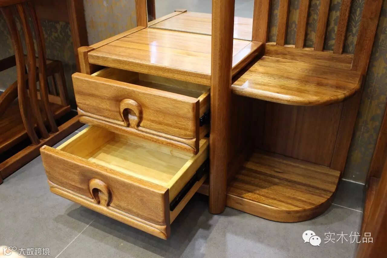 四边都是圆柱,小小的设计心思,避免生活中的磕碰,呵护家人健康尤其是小朋友~整体线条简洁突出整套中式家具最大的设计特点——把手造型。正中2个抽屉容量大,两边一高一低的格柜可分类摆放东西,实用性很强大~