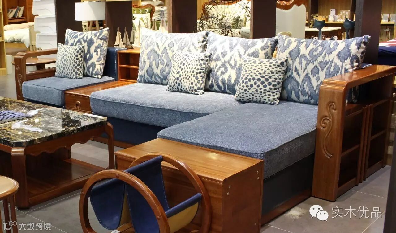 转角沙发是最实用的,横躺竖躺随你喜欢~内置收纳功能还有桌面摆放,实用性很强!靠垫采用了花纹,让整套胡桃色系的中式家具看起来更有“生”气~