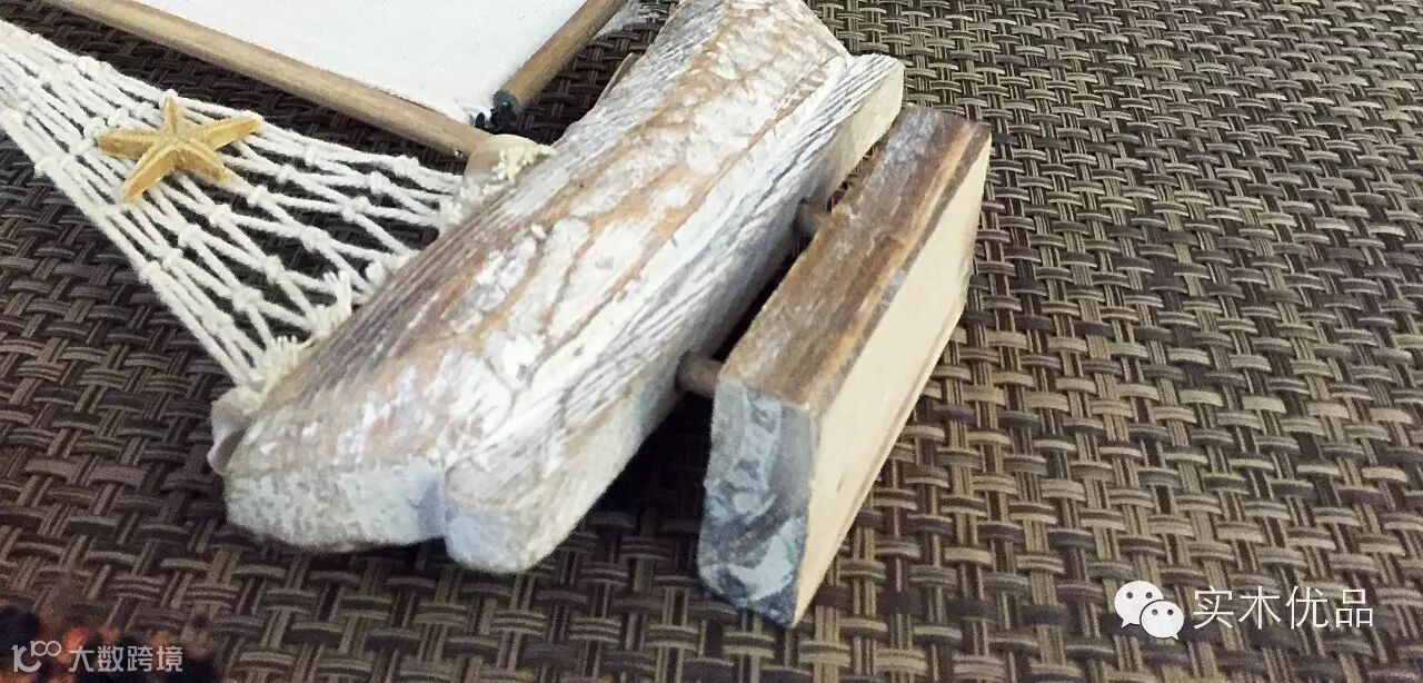 材质: 原木,棉绳,贝壳,木头表面刻意做旧处理原木装饰工艺品;