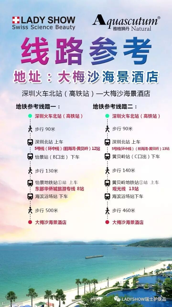 公文站名:海滨浴场站 下车(步行500米 约9分钟到酒店,大堂内有指引会议路线)