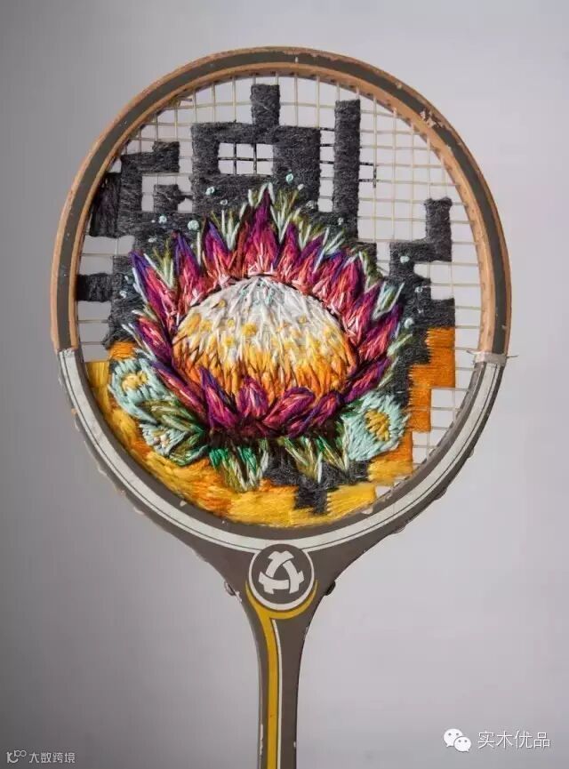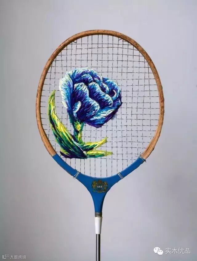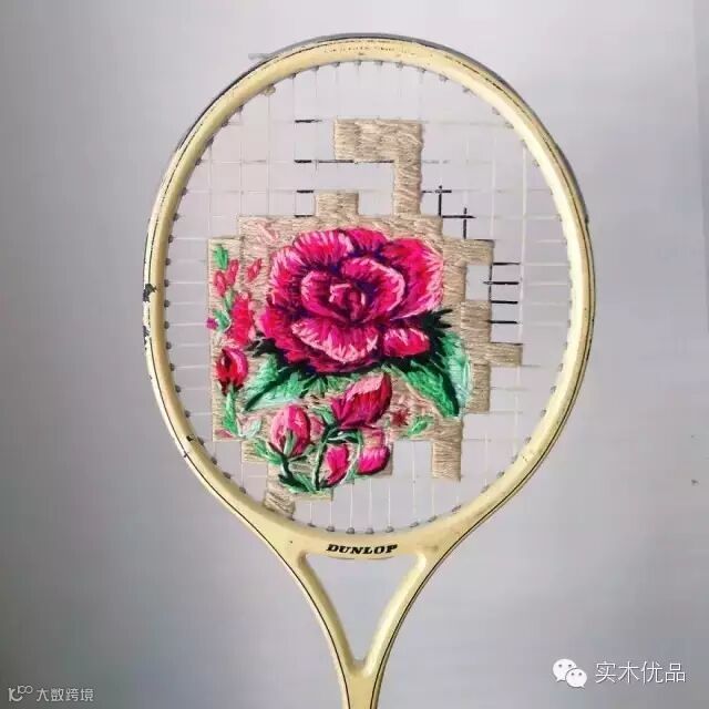 居然用网球拍绣起了花,是不是别有一番韵味?