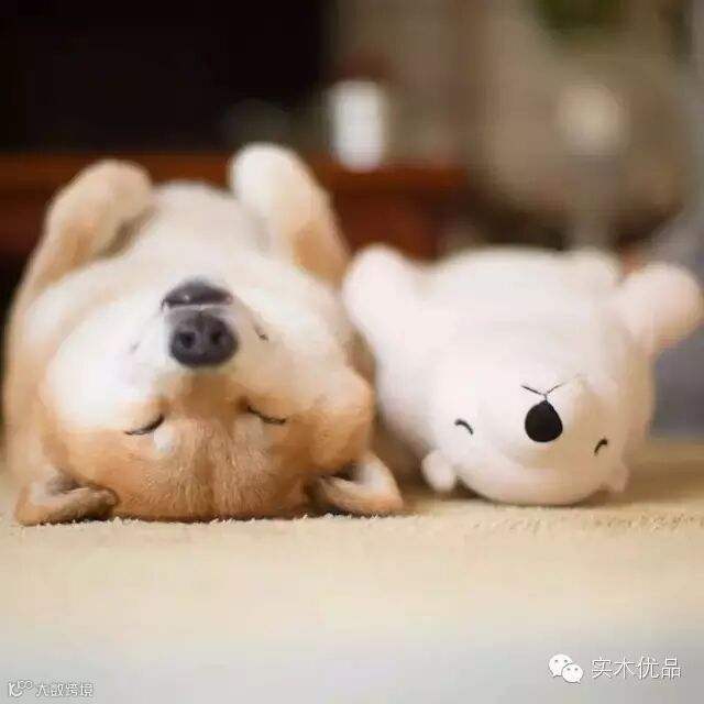 一只名叫Maru的西巴犬,喜欢这样天天和自己的毛绒北极熊沉睡在世界温柔的臂弯中~