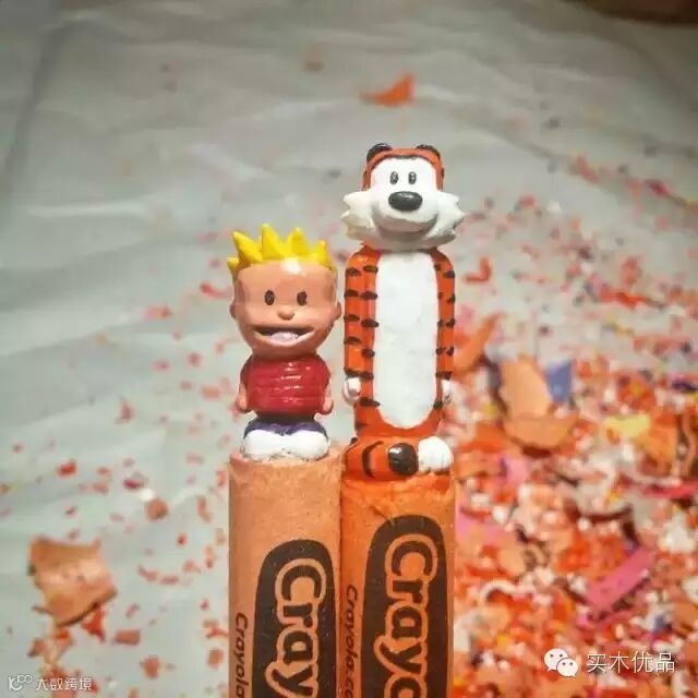 他最喜欢就是把自己在电影或电视中看到的人物用蜡笔雕刻塑造出来。