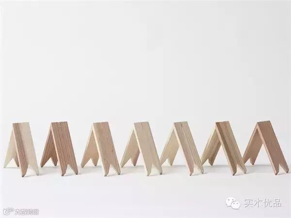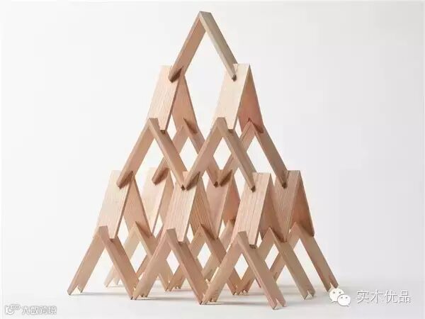 这是一款木质积木,高由一个个 V 字形的积木组成,三角是最稳定的结构了,这种设计能保证它们自己能站立起来保持平衡。每块积木末端都有凹进去的锯齿,以便它们拼接在一起。