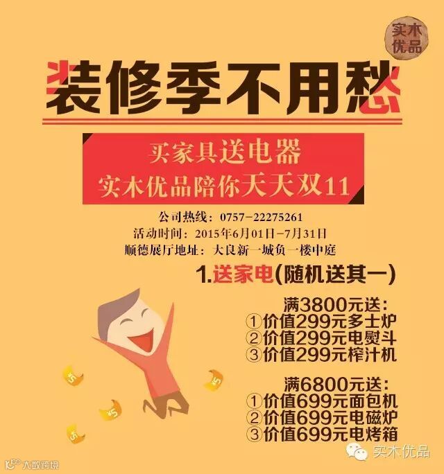 导读:装修季不用愁!买家具送电器,实木优品陪你天天双11!