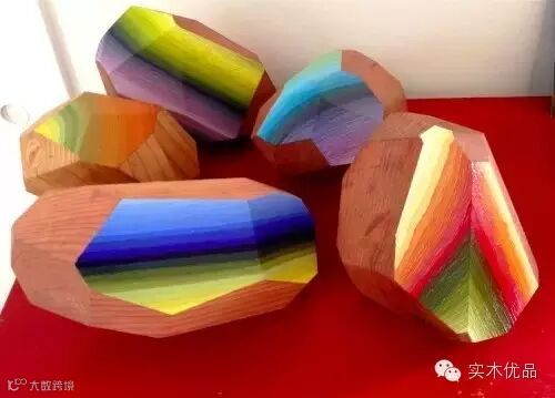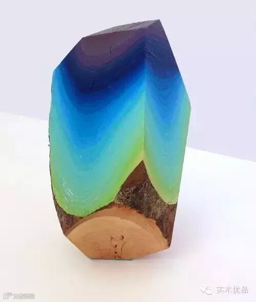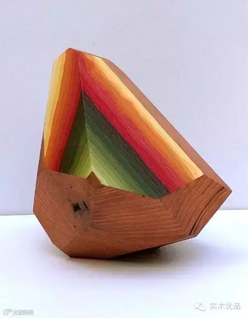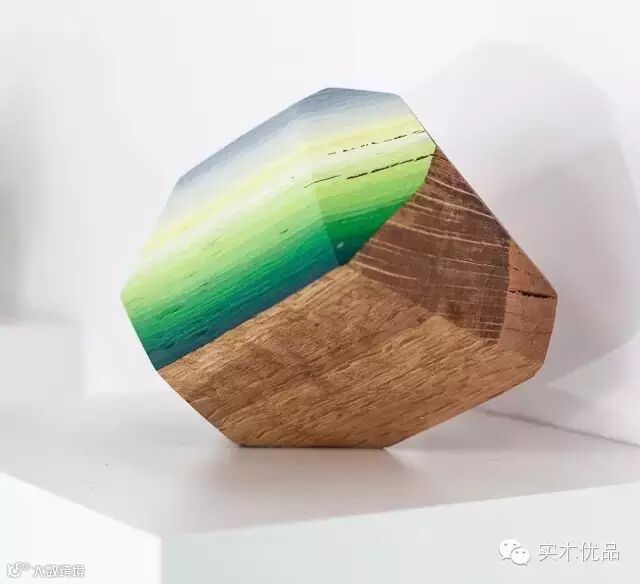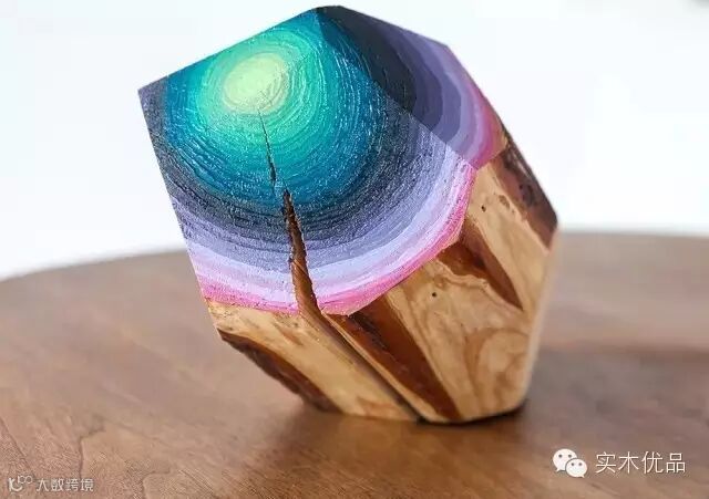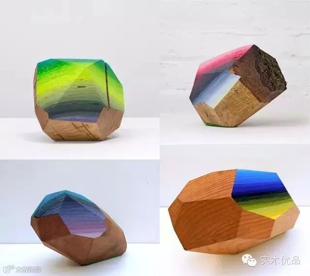 艺术家Victoria Wagner 将木头像宝石一样切割出棱角,再附以油画的色彩,将木心用一层层的颜色装饰的刺激视觉。