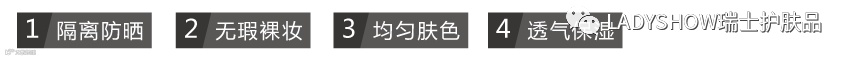 防晒绝对是夏季的必修课程,紫外线看不见摸不着,无孔不入,它对我们的伤害也是肉眼所无法看到的,即使在完善的防护措施,在它的面前也还是会有漏洞。要想尽一切办法,不给紫外线一丝可乘之机。防晒衣、遮阳帽和墨镜随身携带,隔离乳更是必不可少。阳光中的紫外线不但会使黑色素形成,还会让皮肤变得粗糙且加速老化。所以无论你黑与不黑,为了自己皮肤着想,选择一款隔离乳在肌肤表面,比过后补救来的实际得多。因此非常推荐一款瑞士淑女秀的隔离妆前乳!