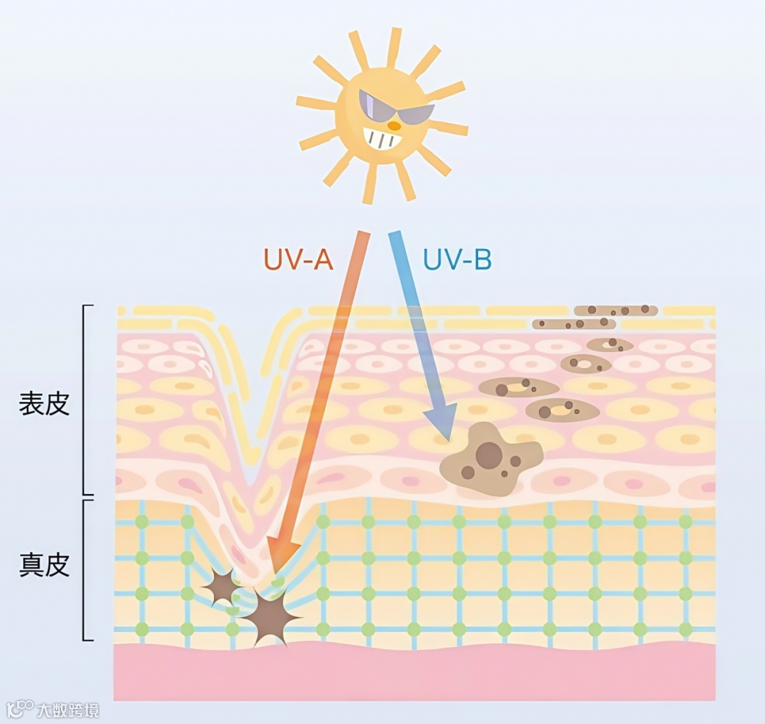 UVA(长波紫外线):穿透力极强,能深入真皮层。