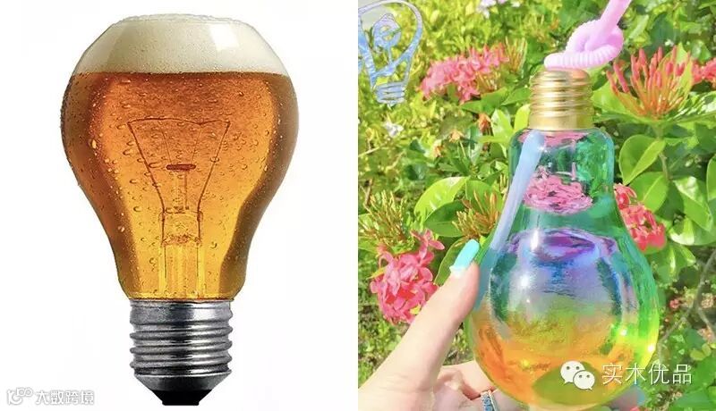 经灯泡包装后的果汁、啤酒或Cocktail都非常可爱有趣!