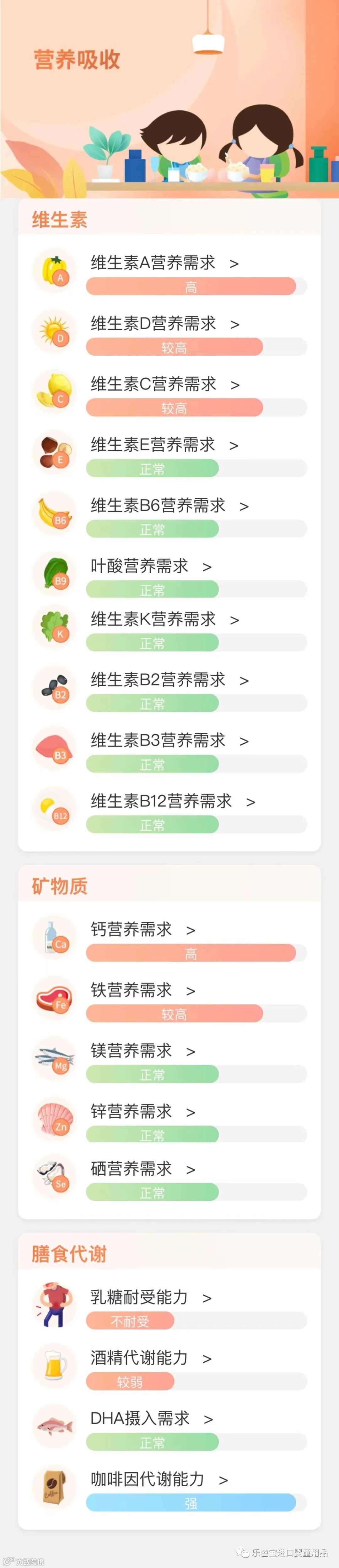 营养版块显示了妈妈们经常担忧的问题——孩子维生素及矿物质是否缺乏?